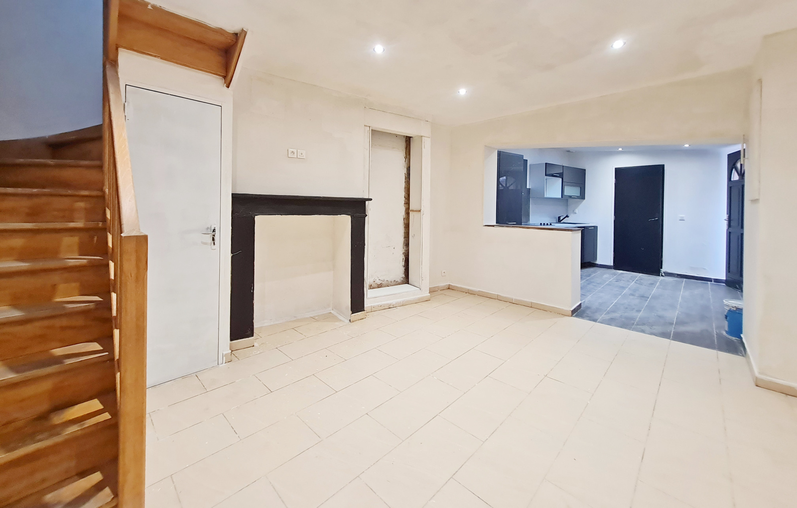 Au rdc : cuisine, séjuour-salon, salle d'eau avec WC